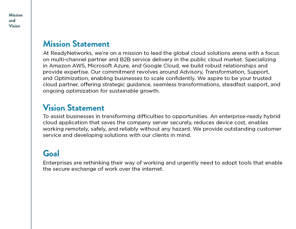 The Solution: Change the company name from ReadyNetworks to READY. Removes the limiting and outdated “networks”. Partners and customers already simply referred to the company as “READY”.